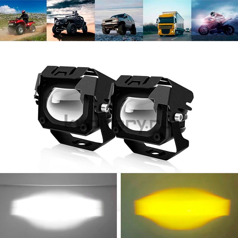 Фара линза на мотоцикл с СТГ белый/желтый свет 30W (комплект 2шт) FR167115