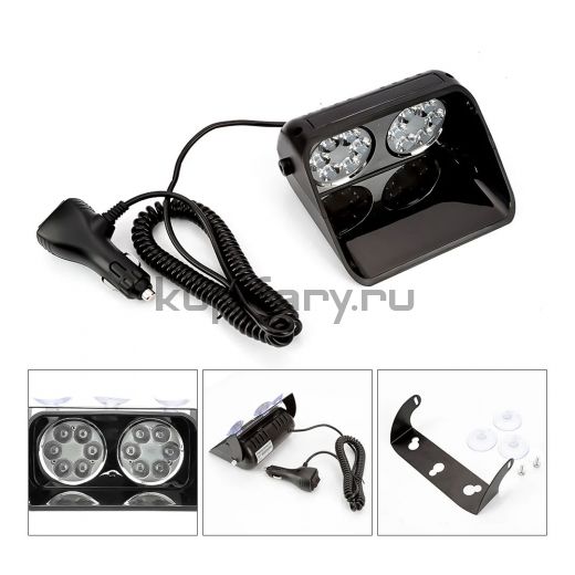 Фара-вспышка под лобовое стекло стробоскоп 6W красный/синий свет 12 Вольт