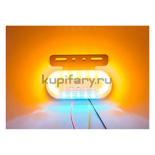 Светодиодный габаритный фонарь белый/желтый свет 12 Вольт с подсветкой номера. Подходит для большинства грузовиков, прицепов, фургонов, автобусов и т.д. Прочный поликарбонатный корпус обеспечивает защиту от пыли и влаги. Размер 136*106*24. Расстояние крепежных шпилек 90 mm.