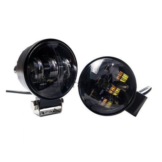 Комплект круглых светодиодных фар авто мото 50 Вт с СТГ линзованные белый/желтый свет