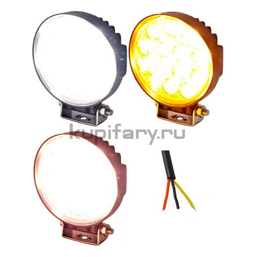 Круглая двухцветная светодиодная фара (белый-желтый) Flood 42 Вт Epistar с переключением FR103642FY