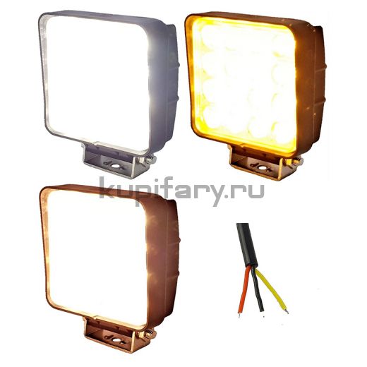 Квадратная двухцветная светодиодная фара 48 Вт 16 led Epistar ближнего света белый желтый