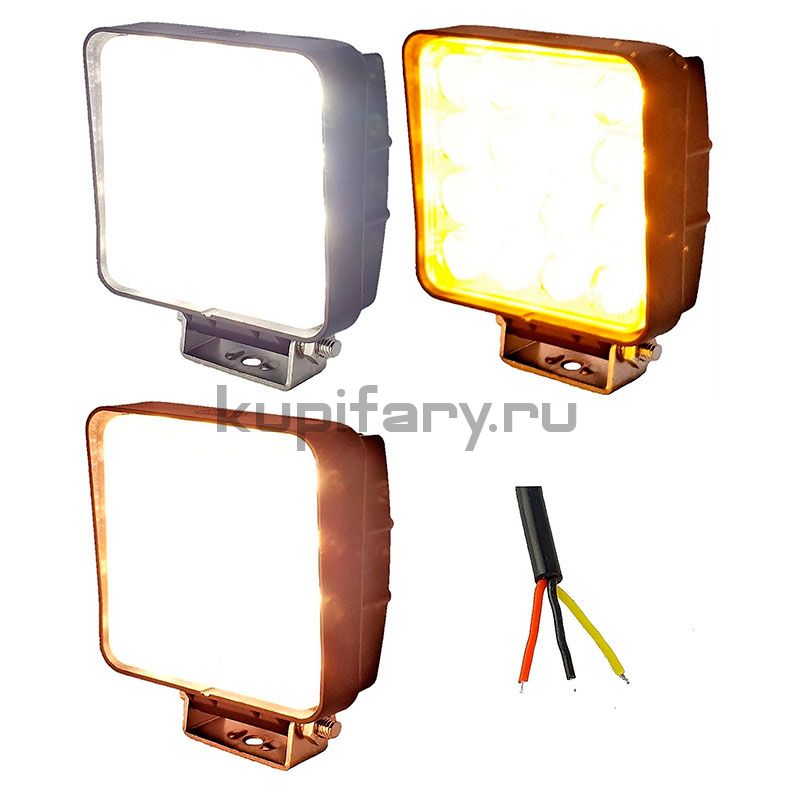 Квадратная двухцветная светодиодная фара (белый-желтый) 48 Вт Flood Epistar FR103748FY
