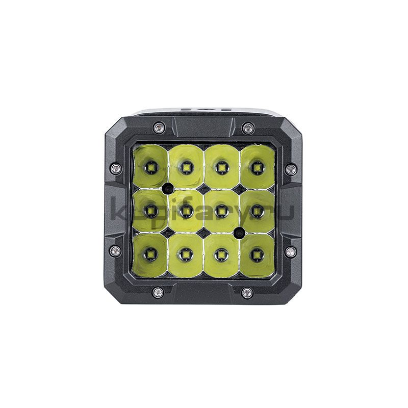 Компактный квадратный корпус легко разместить на бампере, дуге, крыше, кронштейне или рядом со штатной оптикой. Светодиодная технология обеспечивает быстрый отклик, стабильную яркость и долгий ресурс работы по сравнению с галогеном. Фара отлично работает как дополнительный ближний свет: помогает лучше видеть обочину, ямы, препятствия и разметку, а также повышает заметность техники для встречного потока.