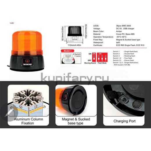 Универсальность применения: Этот маяк идеально подходит для использования на спецтехнике, автомобилях экстренных служб, строительной технике, а также для обозначения опасных зон и территорий.