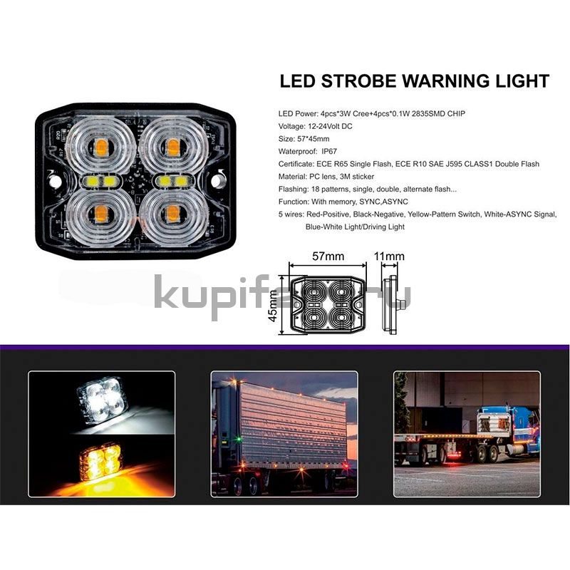 Оранжевый стробоскоп габарит 12W Cree с белой подсветкой KARAVAN PRO 17 режимов GB2383