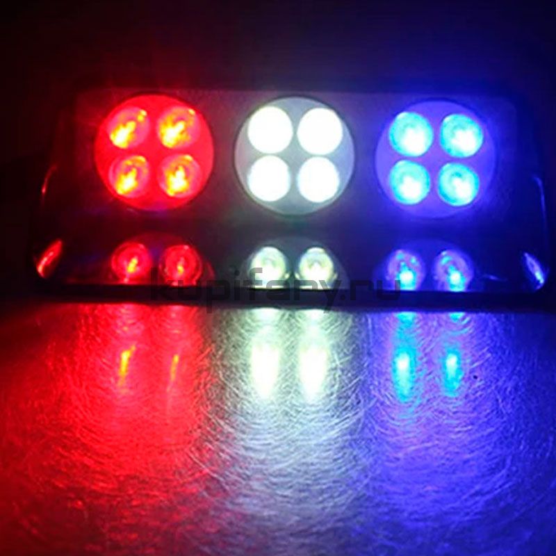 Панель-вспышка под лобовое стекло стробоскоп 5W красный/синий/белый свет 12 Вольт ST2013