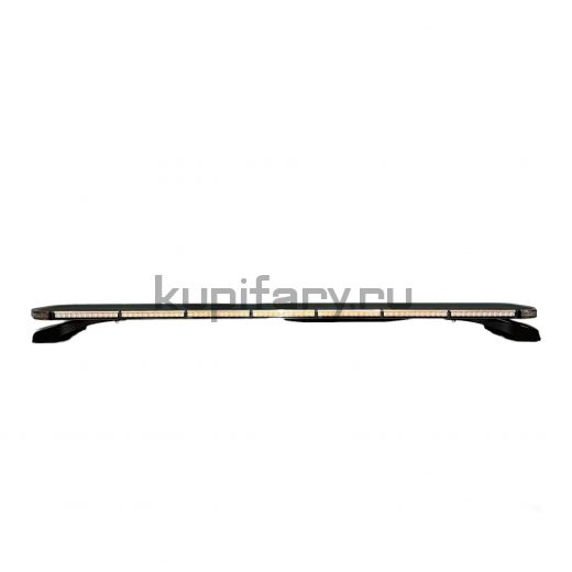 Проблесковая люстра светодиодная четырёхсторонняя оранжевая длиной 120 см (1194×204×23,5 мм), напряжение 12-24 В, 246 светодиодов, 14 режимов мигания, крепление болтовое (комплект в поставке), корпус из поликарбоната, в комплекте пульт дистанционного управления, есть защита от UV-лучей и от обратной полярности.