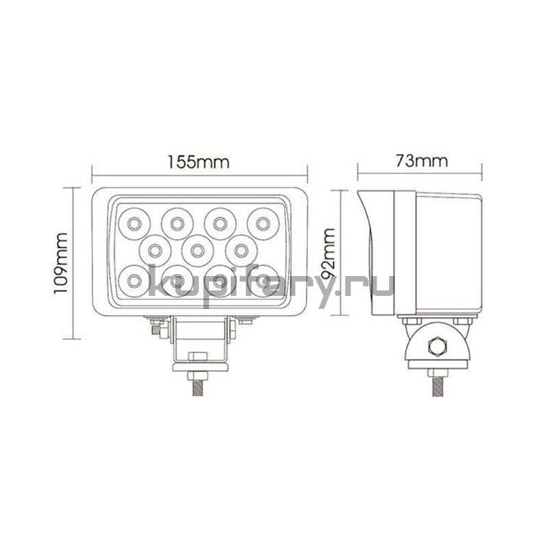 Прямоугольная форма и компактные размеры фары делают ее универсальной для установки на различные типы транспортных средств: внедорожники, грузовики, спецтехнику, квадроциклы и даже легковые автомобили. Корпус изготовлен из прочного алюминия с антикоррозийным покрытием, что обеспечивает защиту от механических повреждений, влаги и пыли. Степень влагозащиты IP67 позволяет использовать фару в любых погодных условиях без потери производительности.
