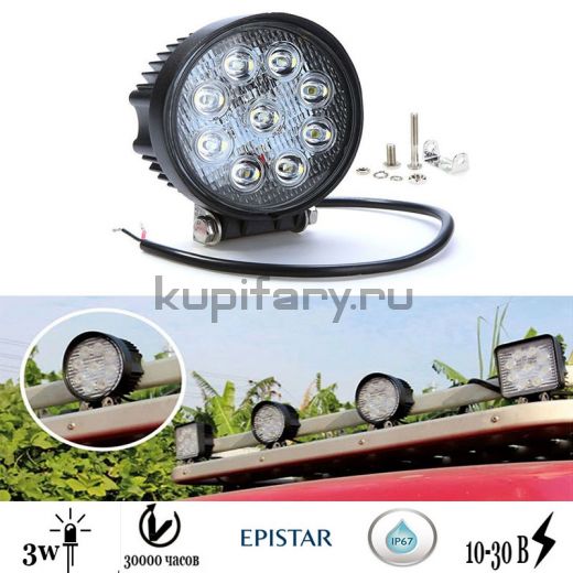 Светодиодная фара 27 Ватт рабочего света круглая 55мм