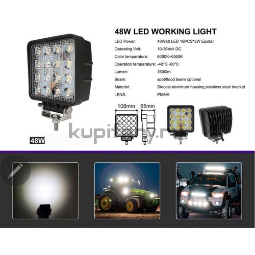 Мощность и яркость: 48 ватт чистой мощности, усиленные светодиодами Epistar, гарантируют яркий и сфокусированный луч света, прорезающий темноту и туман. Световой поток, достигающий [укажите точное значение], позволит вам видеть дальше и четче, повышая безопасность и комфорт во время вождения.