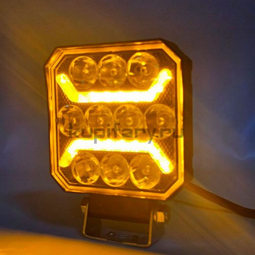 Светодиодная квадратная фара 20 ватт дальнего света с жёлтым габаритом 12-80V на грузовик FR2397