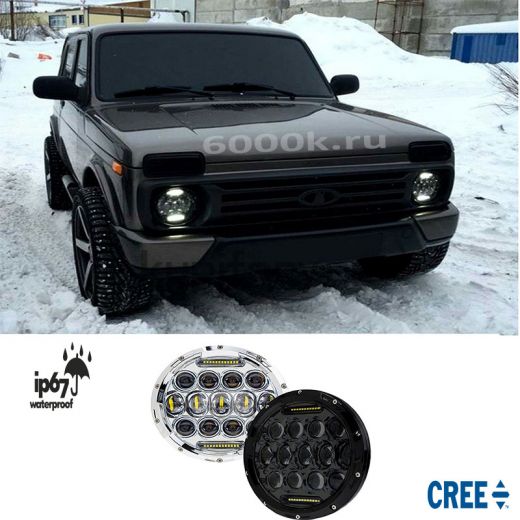 СветодиодныеLED фары штатные 7 дюймов 150Вт на Ниву, Уаз