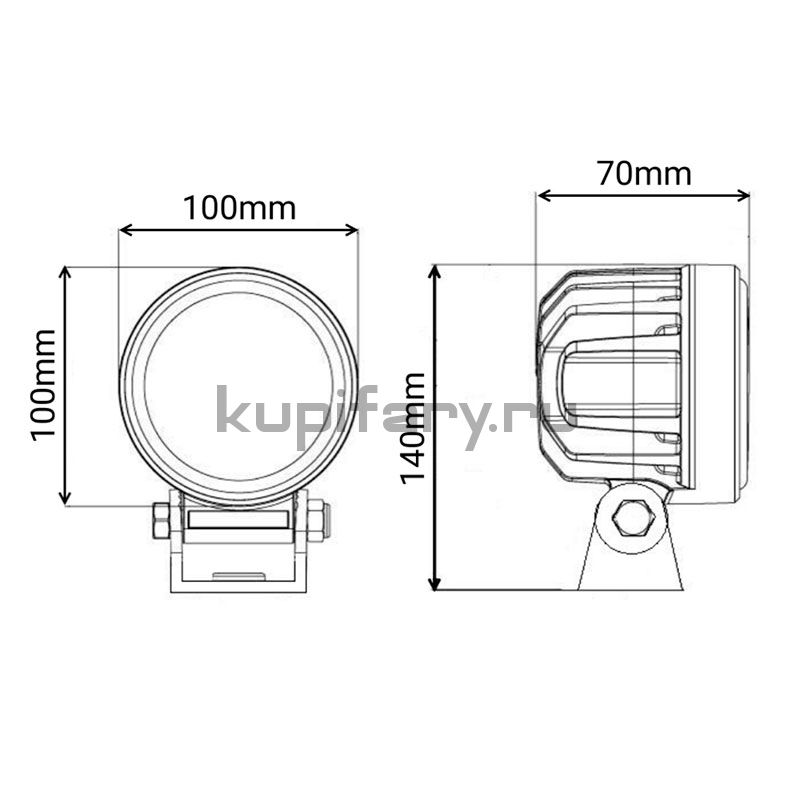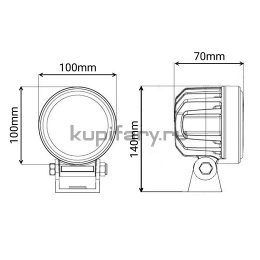 Места монтажа: штатные посадочные места круглой фары, бампер, передняя панель, крыша/люк в виде рабочих фар, кронштейны на раме и на навесном оборудовании. Универсальная конструкция и прочный корпус позволяют устанавливать фару в условиях повышенной вибрации и влаги.
